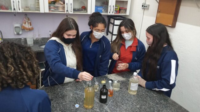 Produção de Xampu No Laboratório de Química, os alunos da 2ª série fizeram xampu!