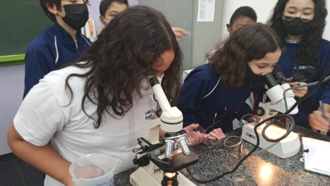 Aula de Ciências em Laboratório de Biologia No Laboratório de Biologia, os alunos do 6º ano tiveram a oportunidade de observar animais com variações de espécies, filos e classes, bem como suas características e divisões entre artrópodes, moluscos, mamíferos etc. (vertebrados e invertebrados). Foi muito proveitoso!