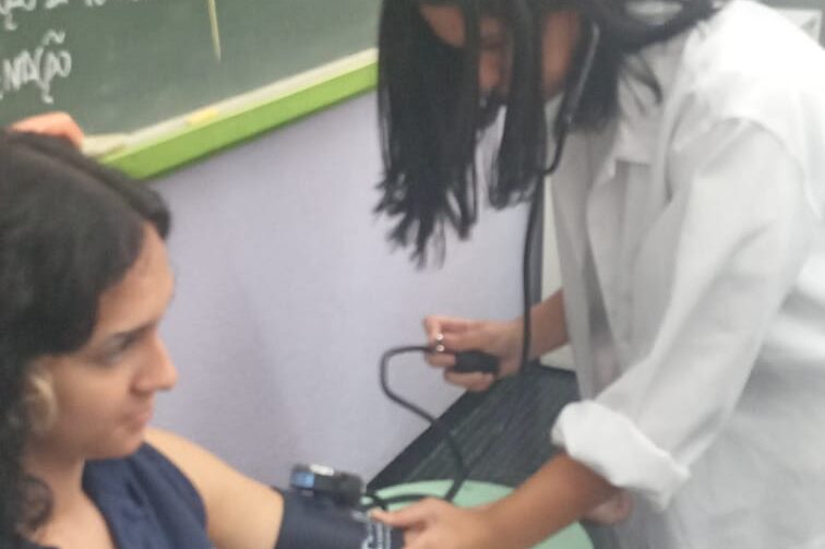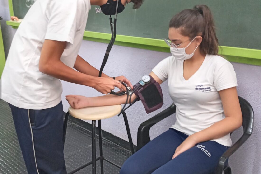 Sistema Cardiovascular na Prática Os alunos da 2ª série do Ensino Médio – Itinerário de Ciências da Natureza – estão estudando Sistema Cardiovascular no Laboratório de Ciências. Aprenderam, entre outras coisas, a aferir a pressão arterial.