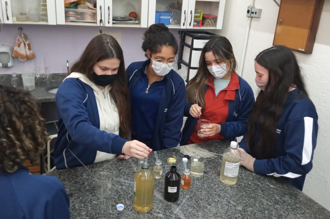Produção de Xampu No Laboratório de Química, os alunos da 2ª série fizeram xampu!