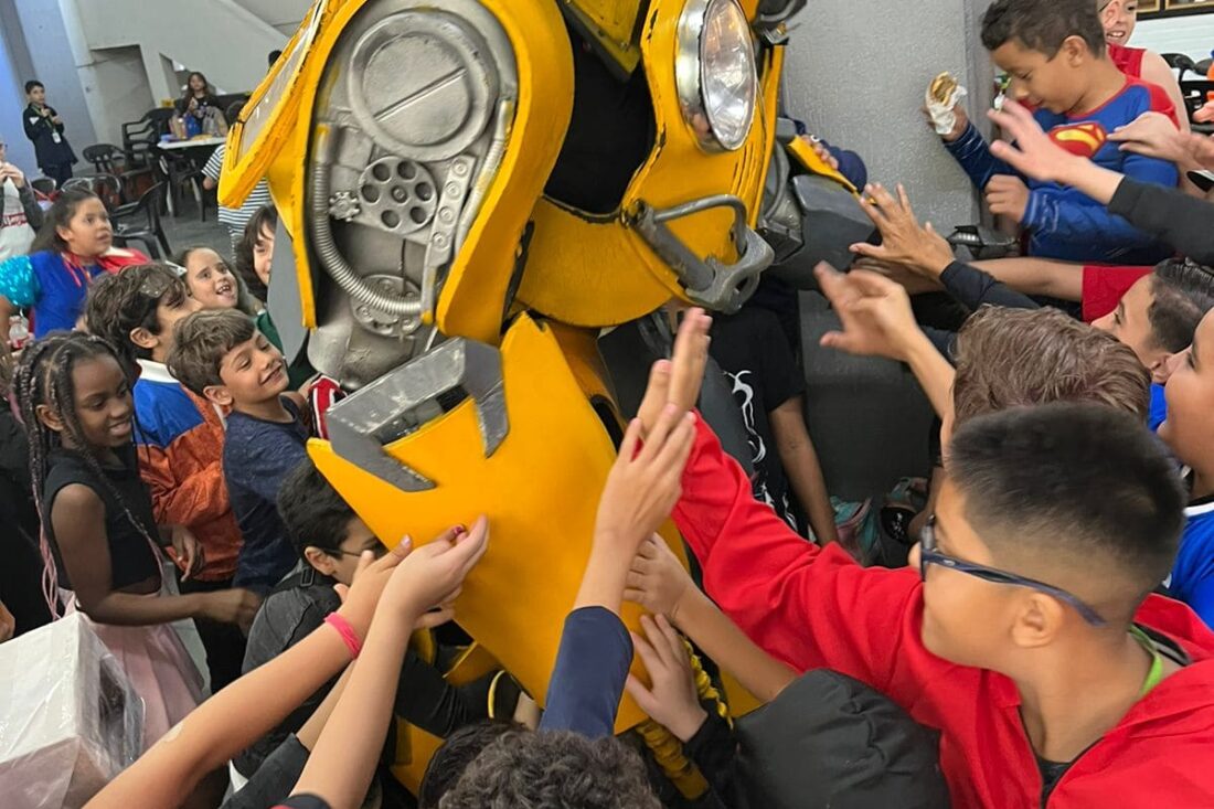 Bumblebee na Escola Como parte das comemorações da Semana da Criança, no dia 11 de outubro, os alunos do Ensino Fundamental e do Ensino Médio (!!!) receberam uma visita inesperada: o Bumblebee! Foi divertidíssimo!